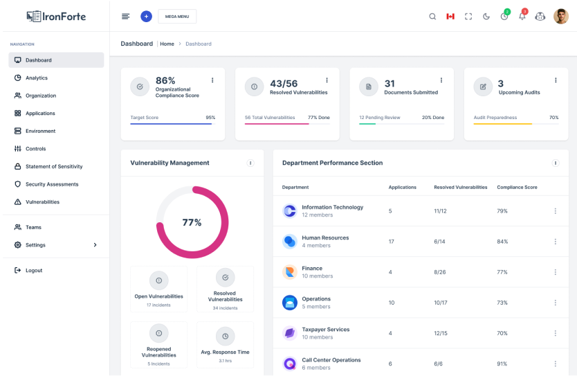 IronForte is designed to track and manage all the essential requirements for ISO, PCI-DSS, and other industry compliance, ensuring seamless audit preparation and ongoing regulatory adherence.